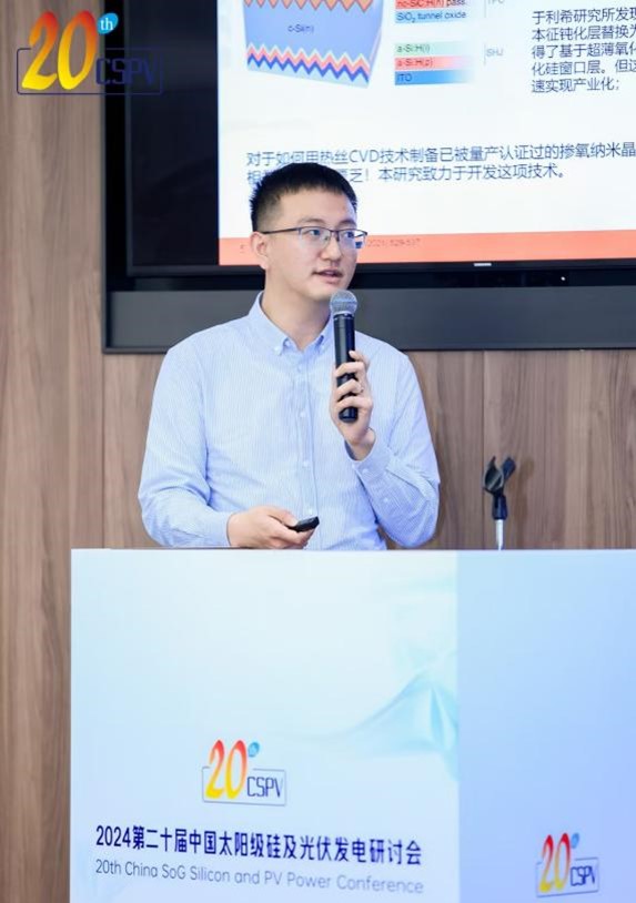 2024年11月21日至23日,第二十届中国太阳级硅及光伏发电研讨会(20th CSPV)在深圳中海凯骊酒店隆重举行。CSPV是我国硅材料及光伏发电领域最重要的学术会议。1000多名中外光伏技术专家、企业家和投资人出席会议。我院师生共8名代表参加了会议,均在会上宣读发表了研究论文,其中两位(周浪、姚凯)为会议主办方邀请报告。我院宣读报告的论文题目分别为:光伏硅片业降本增效新维度(周浪)、异质结构在钙钛矿/晶硅叠层太阳电池中的应用(姚凯)、基于辐射相变复合涂层的光伏组件降温研究(孙喜莲)、ZTTO/ITO叠层TCO薄膜的性能研究及其SHJ电池应用(钟观发)、HWCVD法生长用于SHJ太阳电池的掺氧纳米晶硅薄膜窗口层(孟虹辰)、基于HWCVD技术的本征氢化非晶硅薄膜的结构优化(吴小元)、HWCVD热丝材料的抗老化研究(李瑾峰)和HJT太阳电池的微波增效及稳定性研究(李龙威)。会间交流中各地代表高度赞扬我院的研发努力、贡献和实力。部分企业和投资代表与我们初步交流了合作意向。