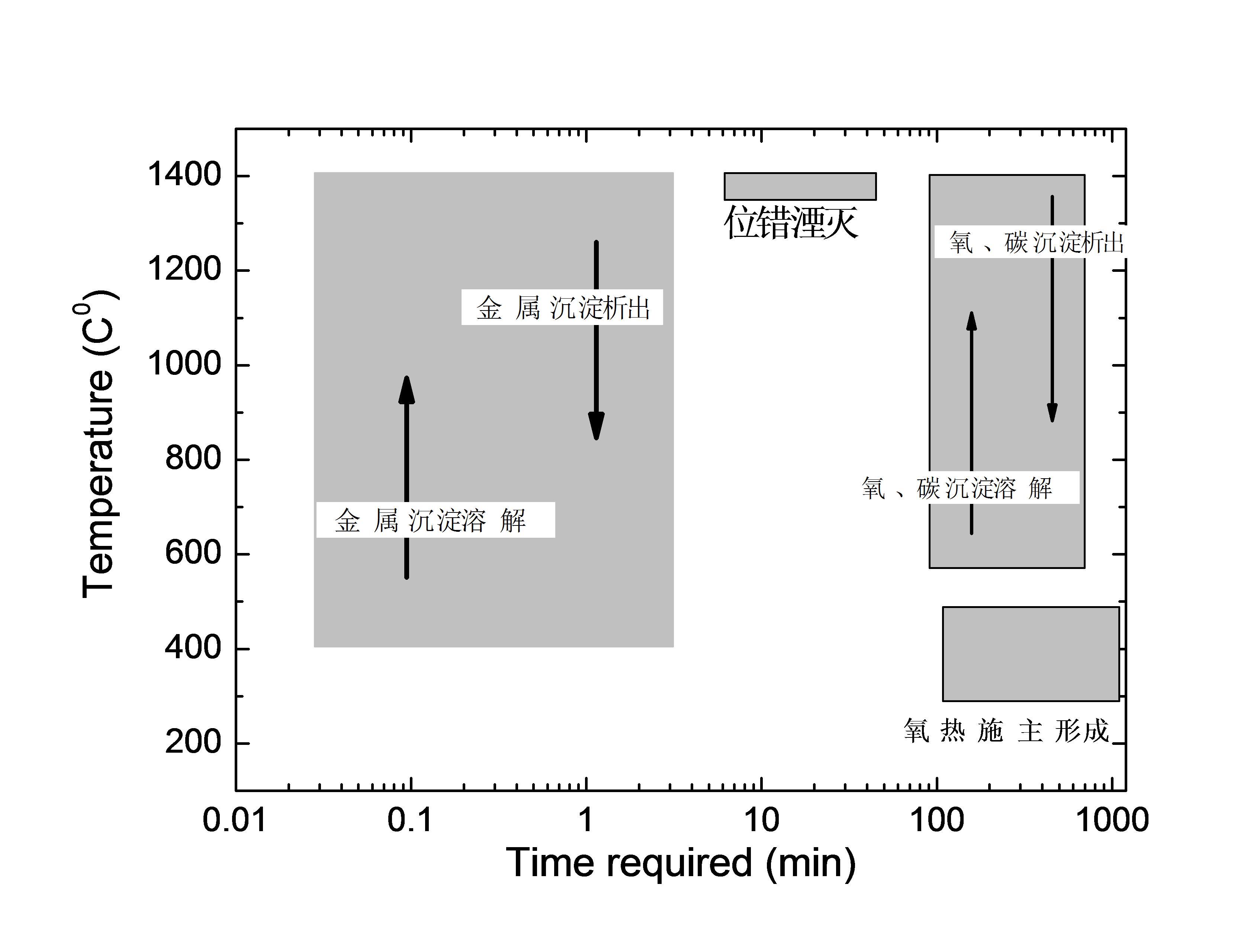 图7 晶体硅材料的各项热敏感因素及其作用的温度-时间范围